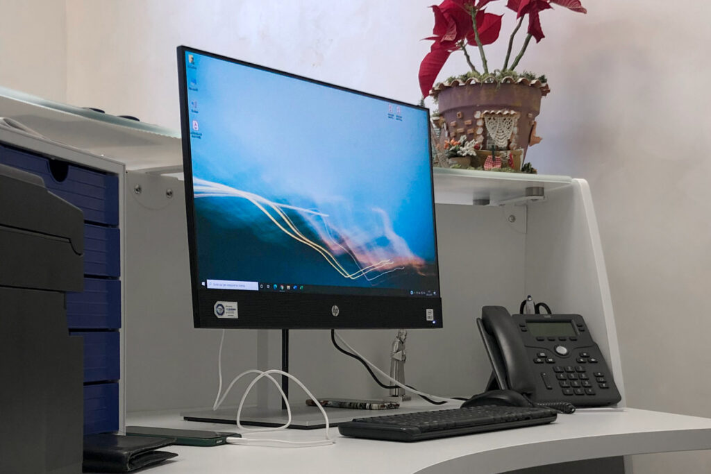 Accanto alle soluzioni visual, iVision ha curato anche l’allestimento IT della nuova agenzia. Notebook e PC all-in-one per le postazioni operative e la reception, una stampante multifunzione Ricoh e un NAS di rete Qnap con software integrati hanno garantito un’infrastruttura tecnologica solida e sicura.