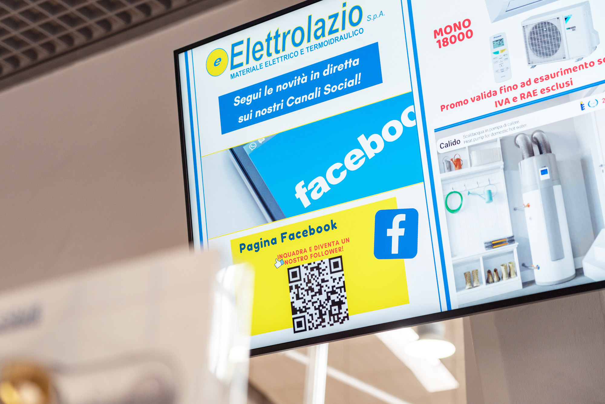 Gli schermi supportano una comunicazione versatile: dalla promozione delle offerte commerciali alla diffusione dei canali social, fino alla condivisione di QR code che permettono ai clienti di accedere rapidamente a informazioni aggiuntive.