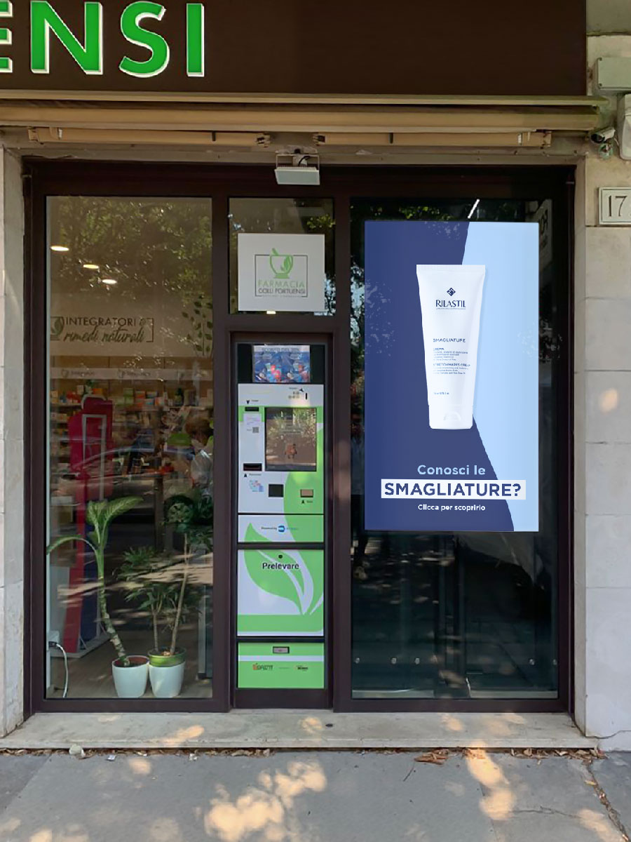 Una soluzione pensata per valorizzare il punto vendita e rafforzare la presenza della farmacia nel contesto urbano, con una comunicazione moderna, sostenibile e sempre aggiornata.