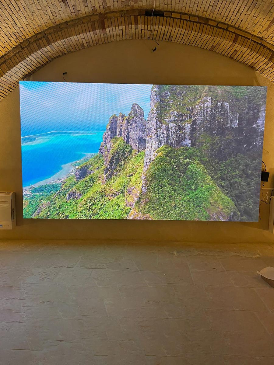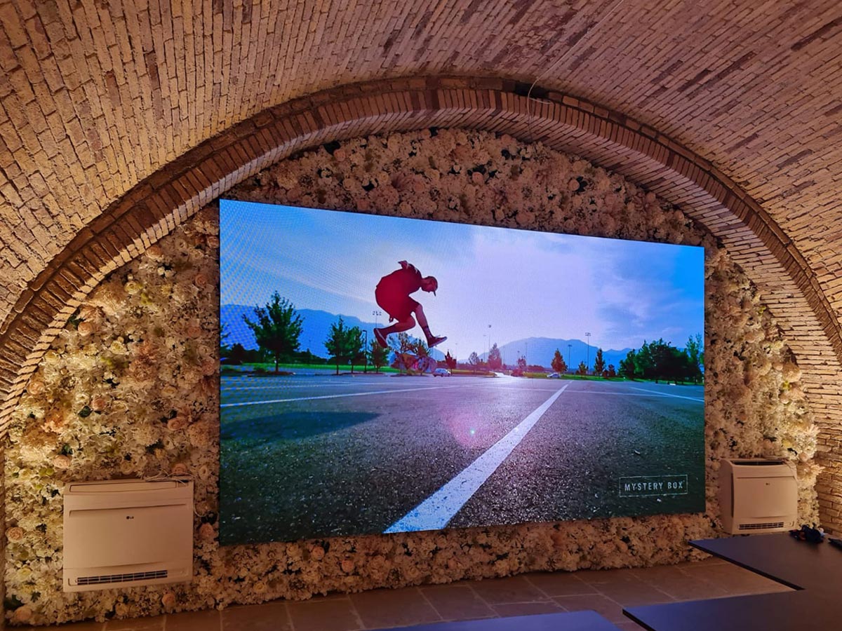 Con l’installazione di un ledwall Samsung indoor da 3,85 x 2,20 m, l’antica cantina del ristorante è stata trasformata in una sala polifunzionale, capace di adattarsi a utilizzi diversi. La qualità visiva, supportata da tecnologie avanzate di elaborazione delle immagini e HDR, consente di valorizzare contenuti video e informativi con una resa naturale e coinvolgente. Il display diventa così uno strumento centrale per l’intrattenimento durante eventi conviviali o per la comunicazione in contesti business, migliorando funzionalità ed esperienza complessiva degli ospiti.