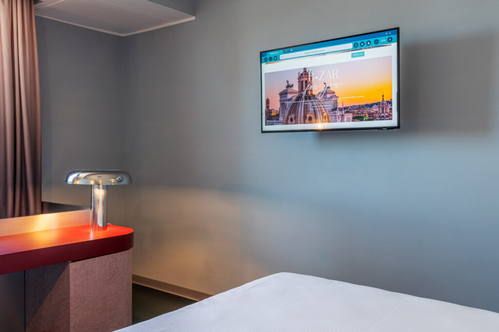 Per arricchire la guest experience, il Moderno Hotel Roma si è affidato a iVision per l’introduzione delle hospitality TV Samsung. Ogni camera è stata equipaggiata con un display professionale da 43 pollici, che permette agli ospiti di accedere a contenuti multimediali, piattaforme di streaming e servizi interattivi legati alla struttura.