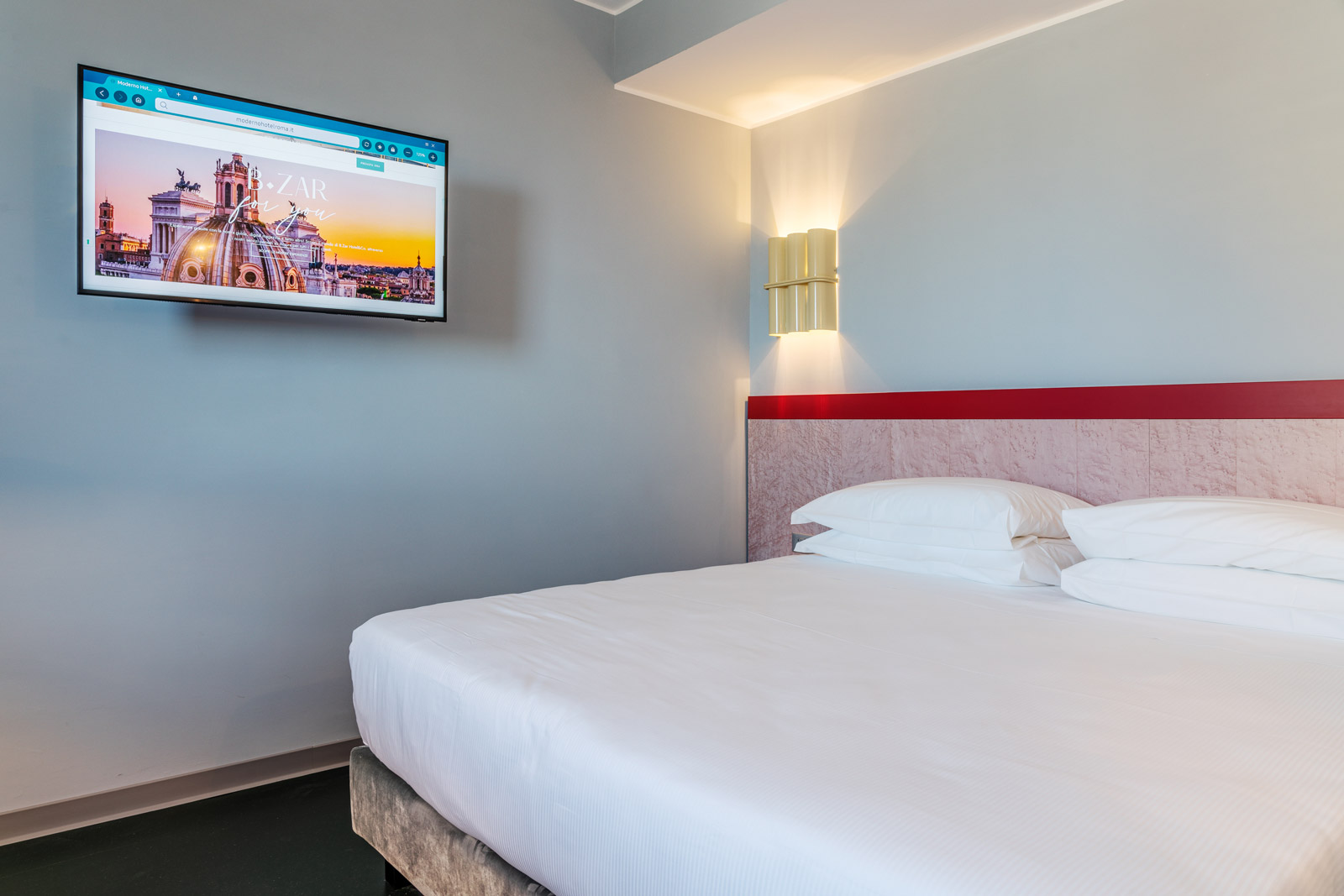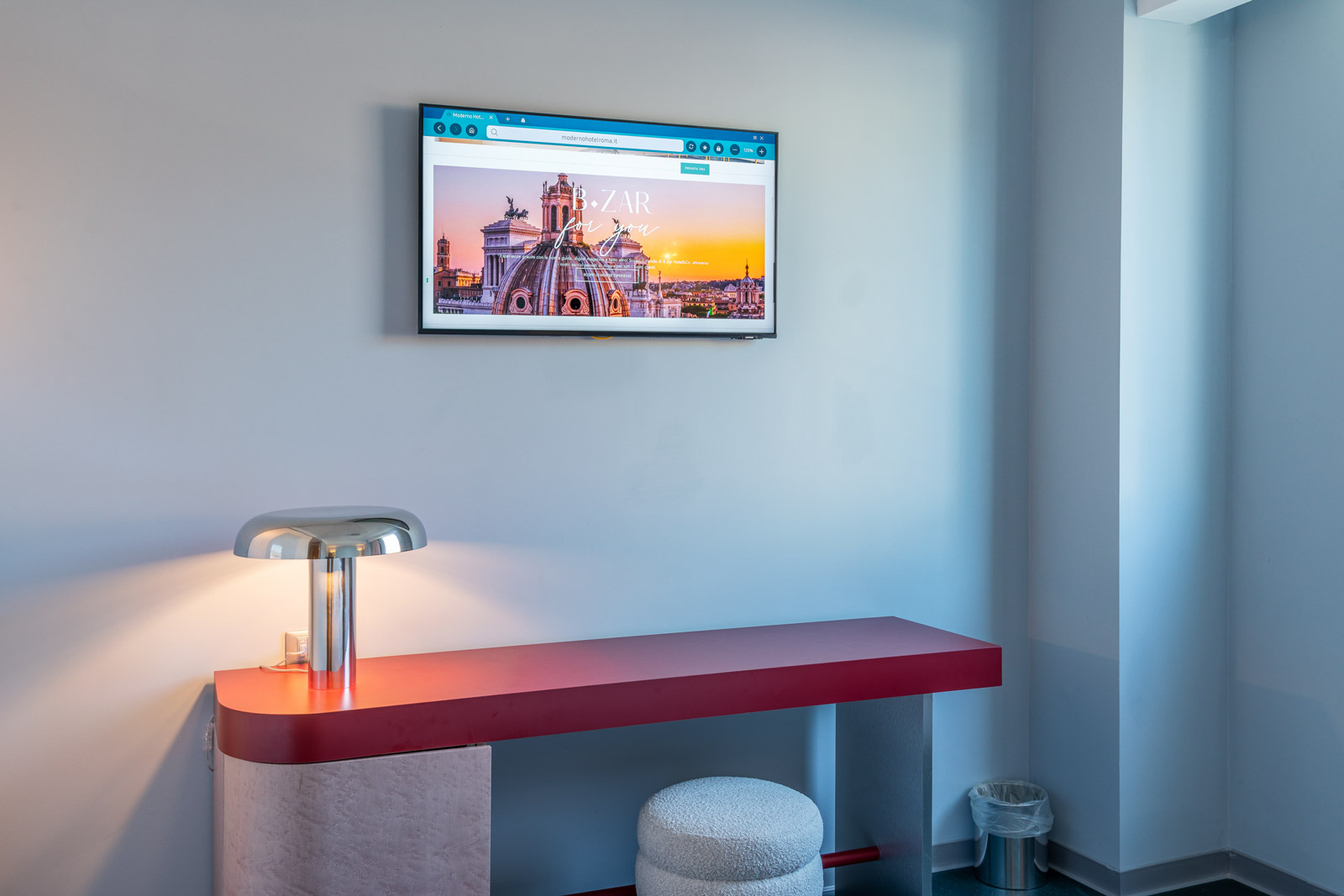 Per arricchire la guest experience, il Moderno Hotel Roma si è affidato a iVision per l’introduzione delle hospitality TV Samsung. Ogni camera è stata equipaggiata con un display professionale da 43 pollici, che permette agli ospiti di accedere a contenuti multimediali, piattaforme di streaming e servizi interattivi legati alla struttura.
