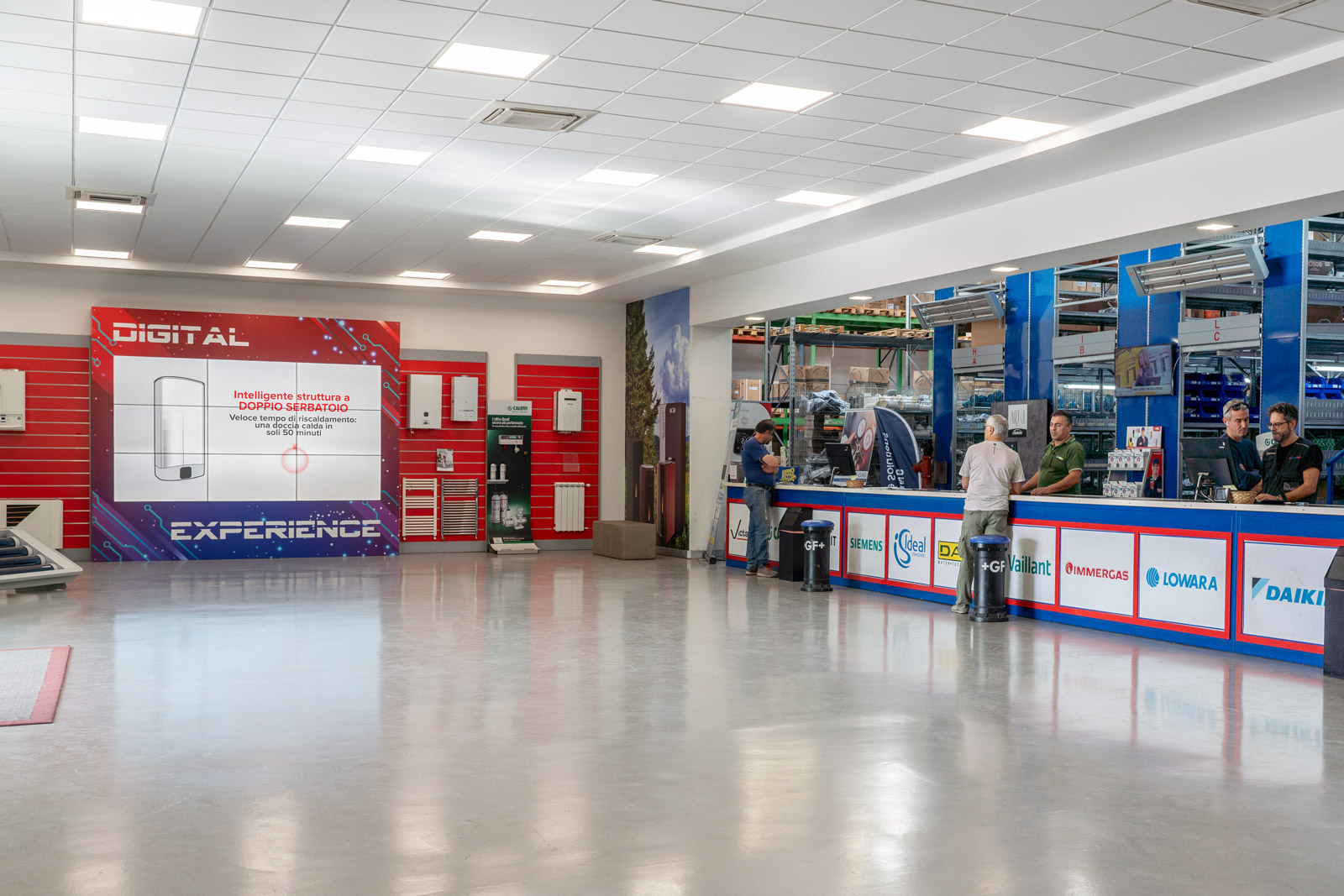 Puntoclima è una realtà di riferimento nel commercio all’ingrosso di apparecchi e accessori per impianti idraulici, di riscaldamento e di condizionamento, nonché un punto di riferimento nel Lazio per i professionisti del settore. In un contesto in cui la comunicazione visiva assume un ruolo sempre più strategico, l’azienda ha scelto di integrare il Digital Signage all’interno della propria sede principale, rinnovando il modo di presentare prodotti, servizi e informazioni alla clientela.